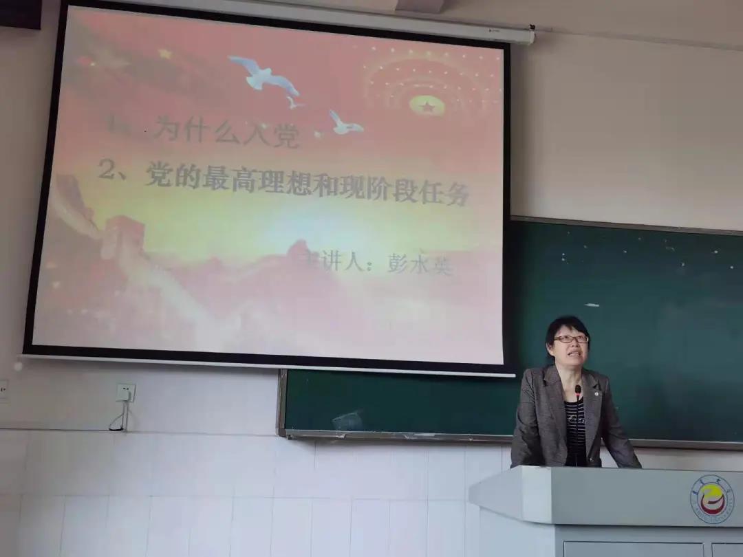 5月15日上午,太阳成集团tyc234cc在预科楼2301教室为本期入党积极分子进行“明确党的纲领,为实现最高理想和现阶段目标努力奋斗”专题培训,本次课程由彭水英老师主讲。