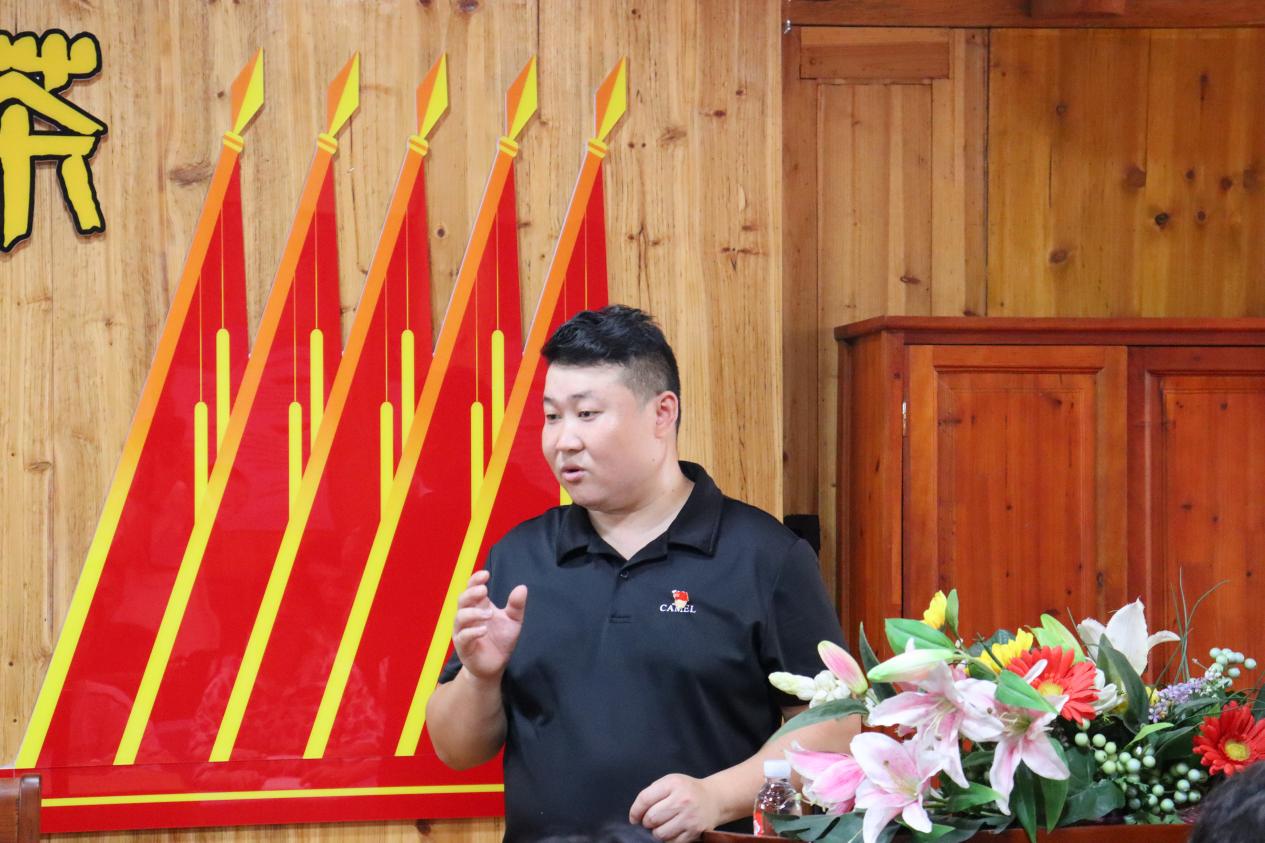 李端生教授向在座党员们讲述了自己的工作经历,讲述了自己从一名大学教授快速转变身份,成为一名乡村振兴驻村第一书记的经历,用实际行动回报家乡的故事。2021年5月,即将退休之际李端生教授积极主动请缨,离开大学教师岗位同两名队员一道前往永顺润雅乡五官村开展乡村振兴驻村帮扶工作。在任期间,李端生教授以实际行动诠释了“不忘初心,方得始终”的深刻内涵,他用自己的知识与热情,投入到乡村振兴的伟大事业中,全力解决当地村民急难愁盼的问题,努力提升当地村民生活起居条件,赢得了当地村民的一致好评。讲课中他勉励同志们在校期间学好专业知识,练就过硬本领,投身基层建设,把论文写在祖国大地上。