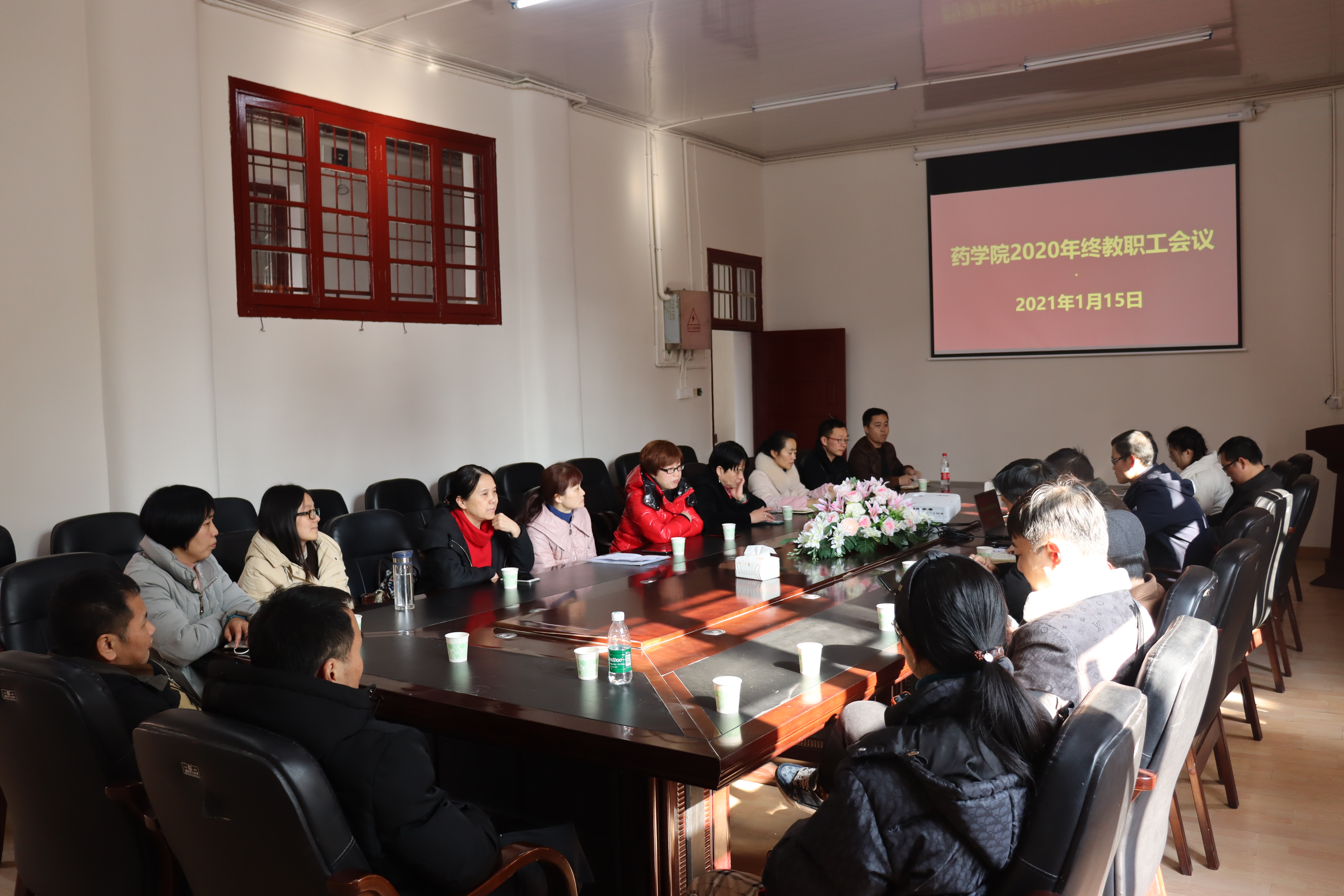 本网讯:(院办)为凝聚共识,沟通信息,统一思想,总结成绩,谋划未来,1月15日下午,太阳成集团tyc234cc在行政办公楼会议室隆重召开了2020年终教职工会议,公司全体教职工参加了会议。当天下午,天空晴朗,阳光普照,开会之前,全院教师在大楼前高兴地拍了一张全家福。会议由王江生主持。