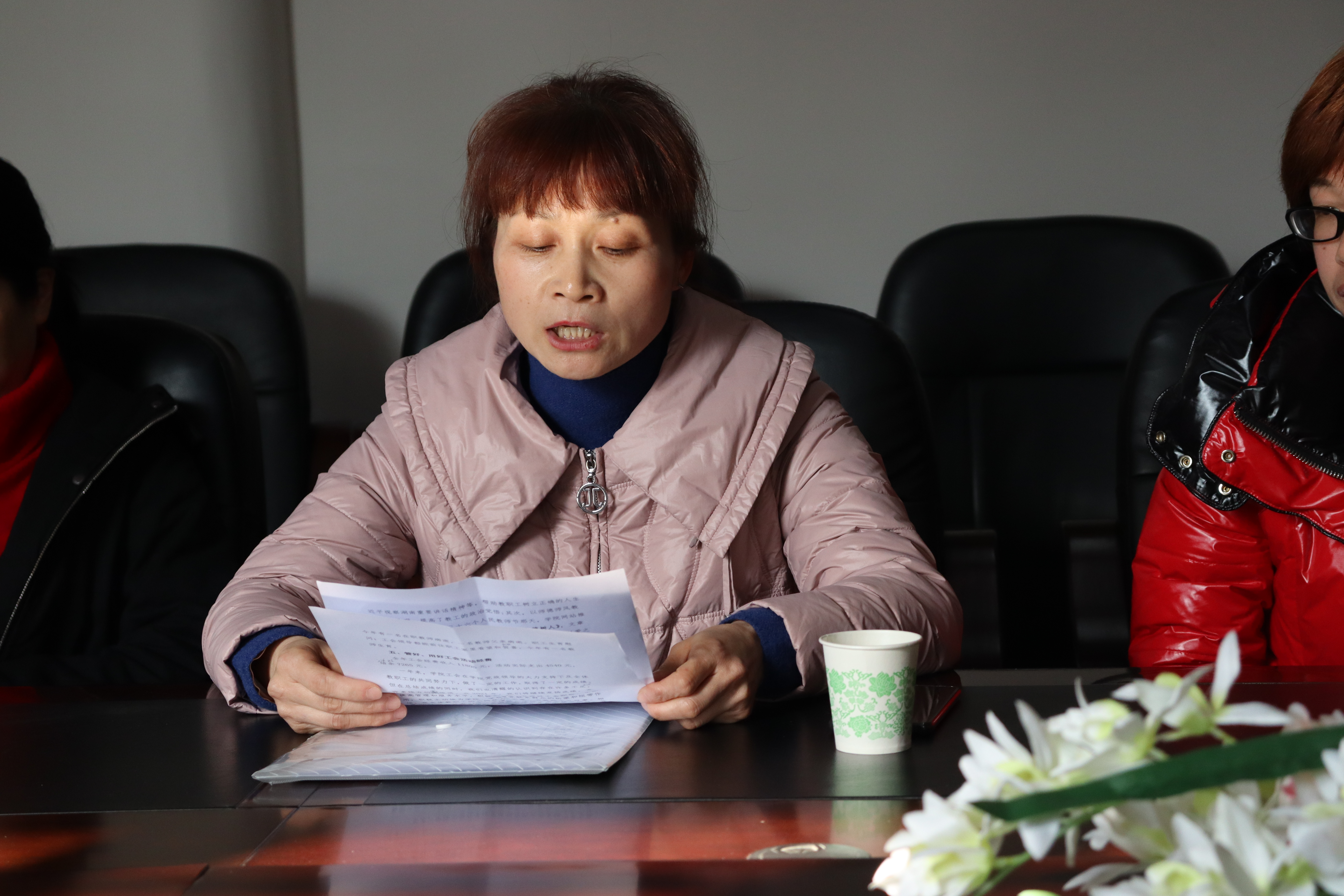 图为 工会副主席何玲作工会工作报告