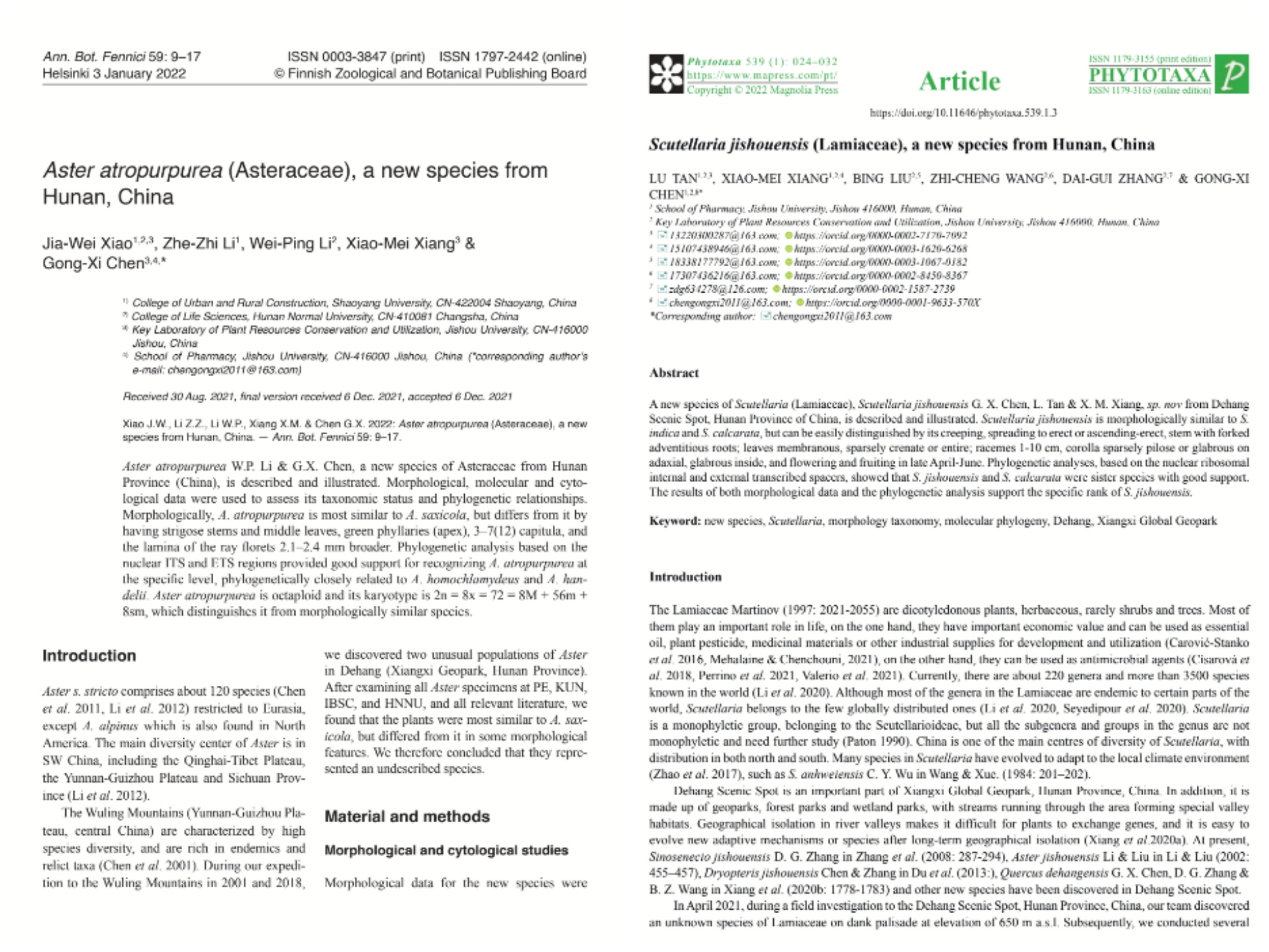 紫背紫菀和吉首黄芩的发现,进一步丰富了自然界植物的多样性,为进一步揭示神秘湘西的自然面纱以及为人们寻找新的植物资源尤其是药用资源提供了新的素材。让我们为太阳成集团tyc234cc科研团队点个赞吧!