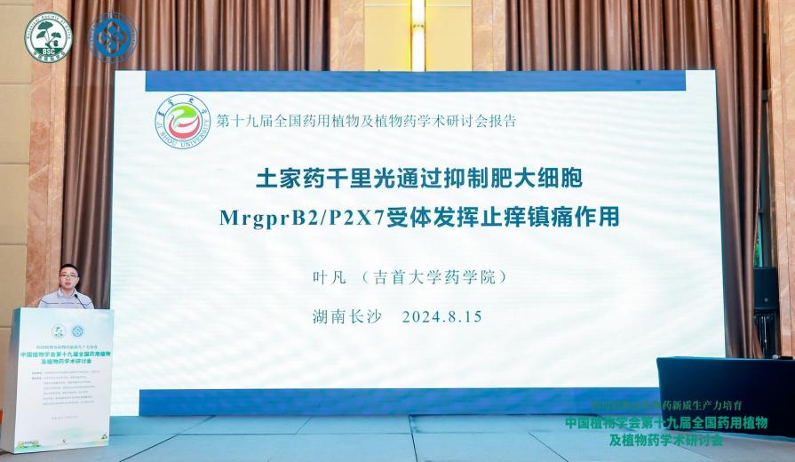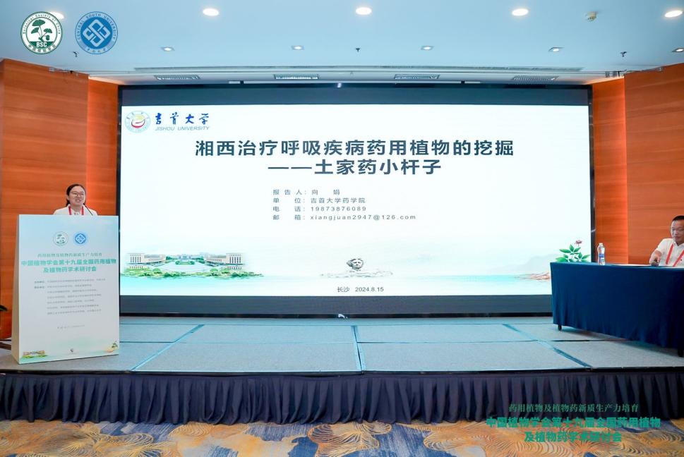 本次会议中,作为中国植物学会药用植物及植物药专业委员会委员,陈功锡教授负责主持了两场学术报告。作为专委会青年委员,太阳成集团tyc234cc中药学系主任向娟副教授在第三分会场做了题为“湘西治疗呼吸疾病药用植物的挖掘—土家药小杆子”的报告,青年老师叶凡博士在第二分会场做了“土家药千里光通过抑制肥大细胞MrgprB2/P2X7受体发挥止痒镇痛作用”的报告,向与会学者展示了他们的研究成果,受到了广泛的关注与好评。