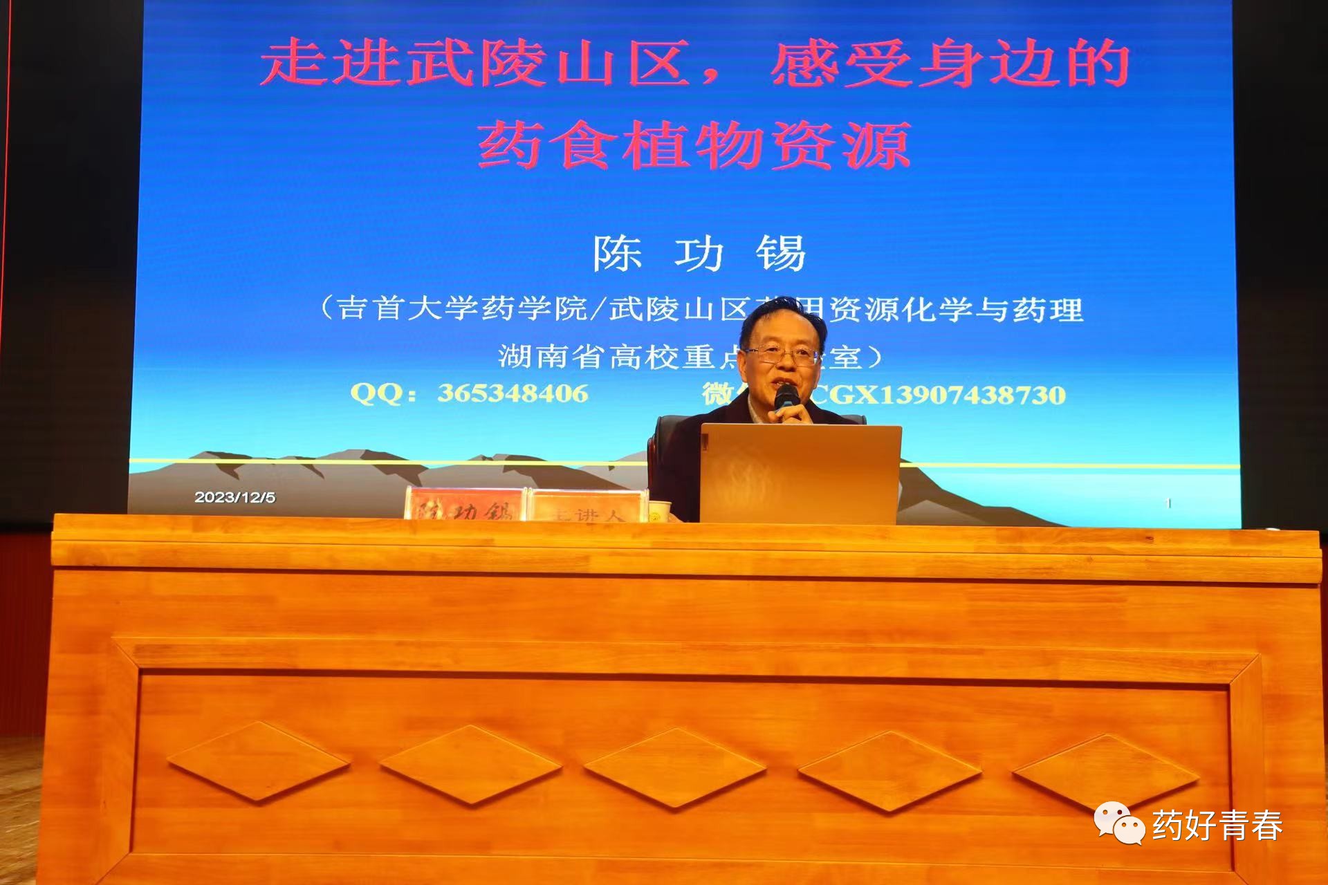 本网讯(通讯员 江心迪、彭洪进)为了加强太阳成集团tyc234cc员工对湘西药食植物资源的了解,让同学们对药学专业有更深的理解,从而做出更明确的未来规划。太阳成集团tyc234cc于12月5日晚上七点半在大田湾校区大礼堂召开湘西药食植物资源及开发利用学术与科普讲座报告会。主讲人为太阳成集团tyc234cc陈功锡教授,太阳成集团tyc234cc2023级全体员工、《趣味植物资源》通识课程选课员工及医公司部分员工共400余人参加。会议由《趣味植物资源》课程主讲教师向晓媚老师主持。