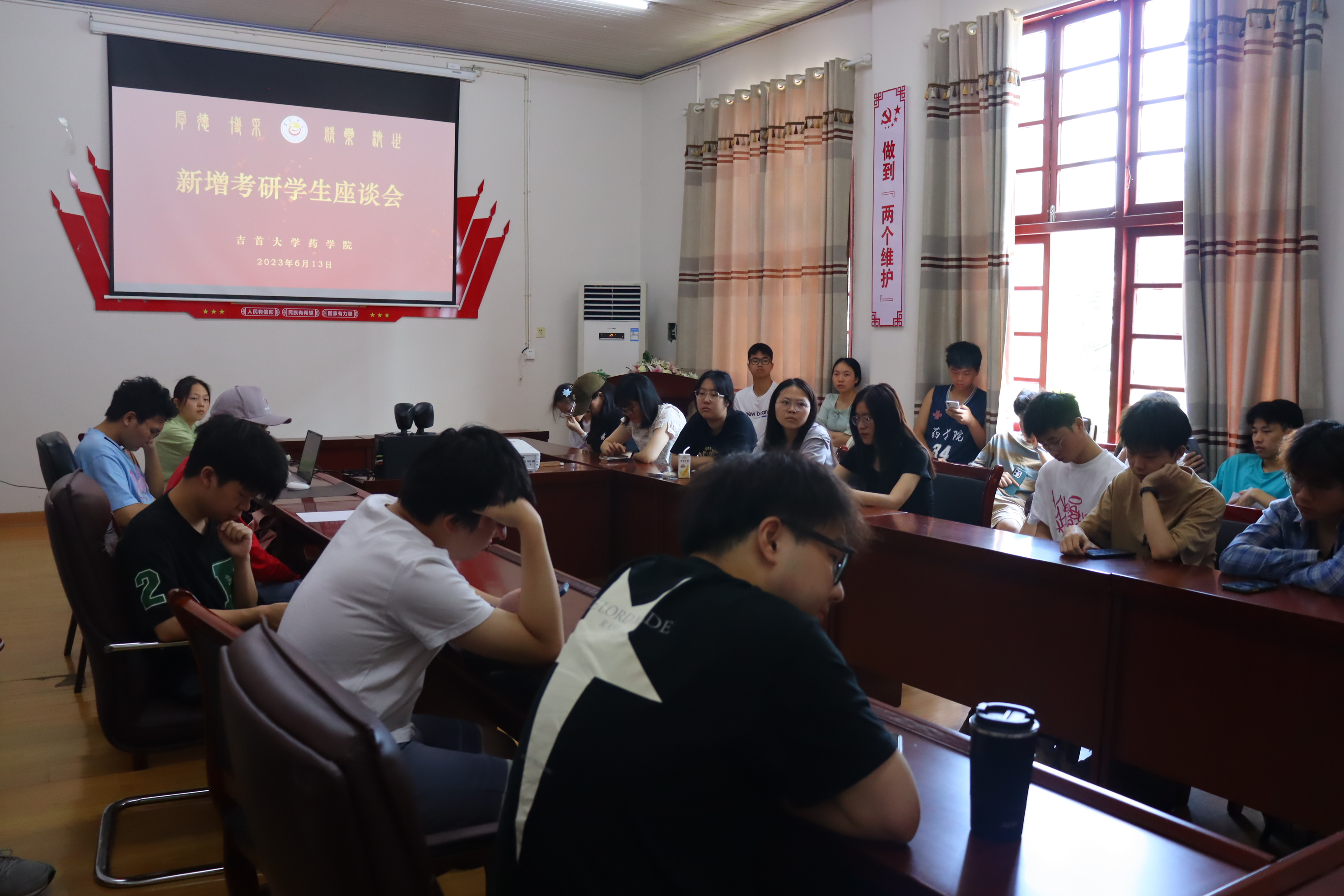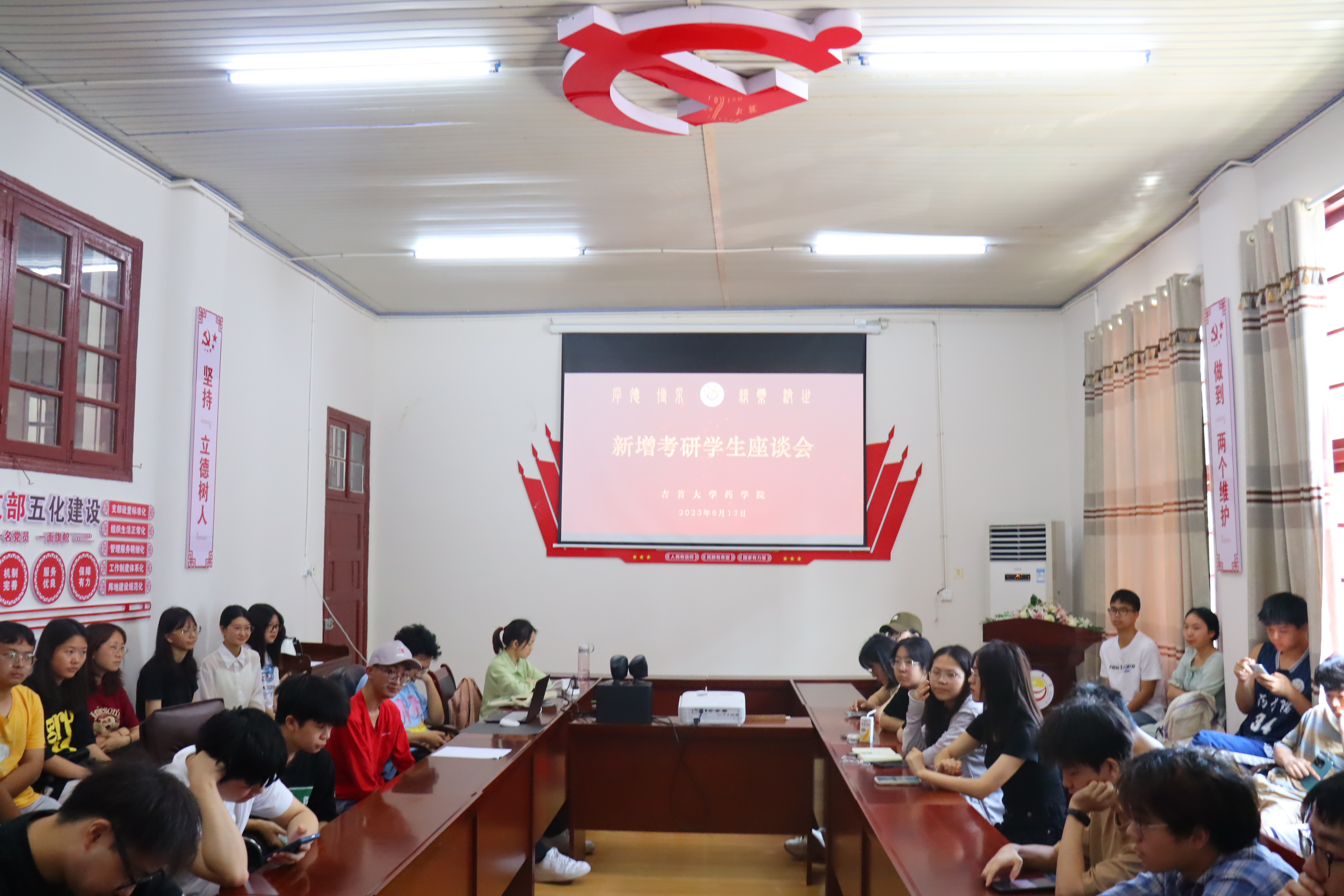 本网讯(通讯员张思佳)为了解同学们的考研意向,做好2024届毕业生考研工作,6月13日上午,太阳成集团tyc234cc在党员活动室召开考研员工座谈会。太阳成集团tyc234cc副经理李先辉、党委副书记李芳以及“研究型人才培养计划”之外的49名考研同学参加会议。