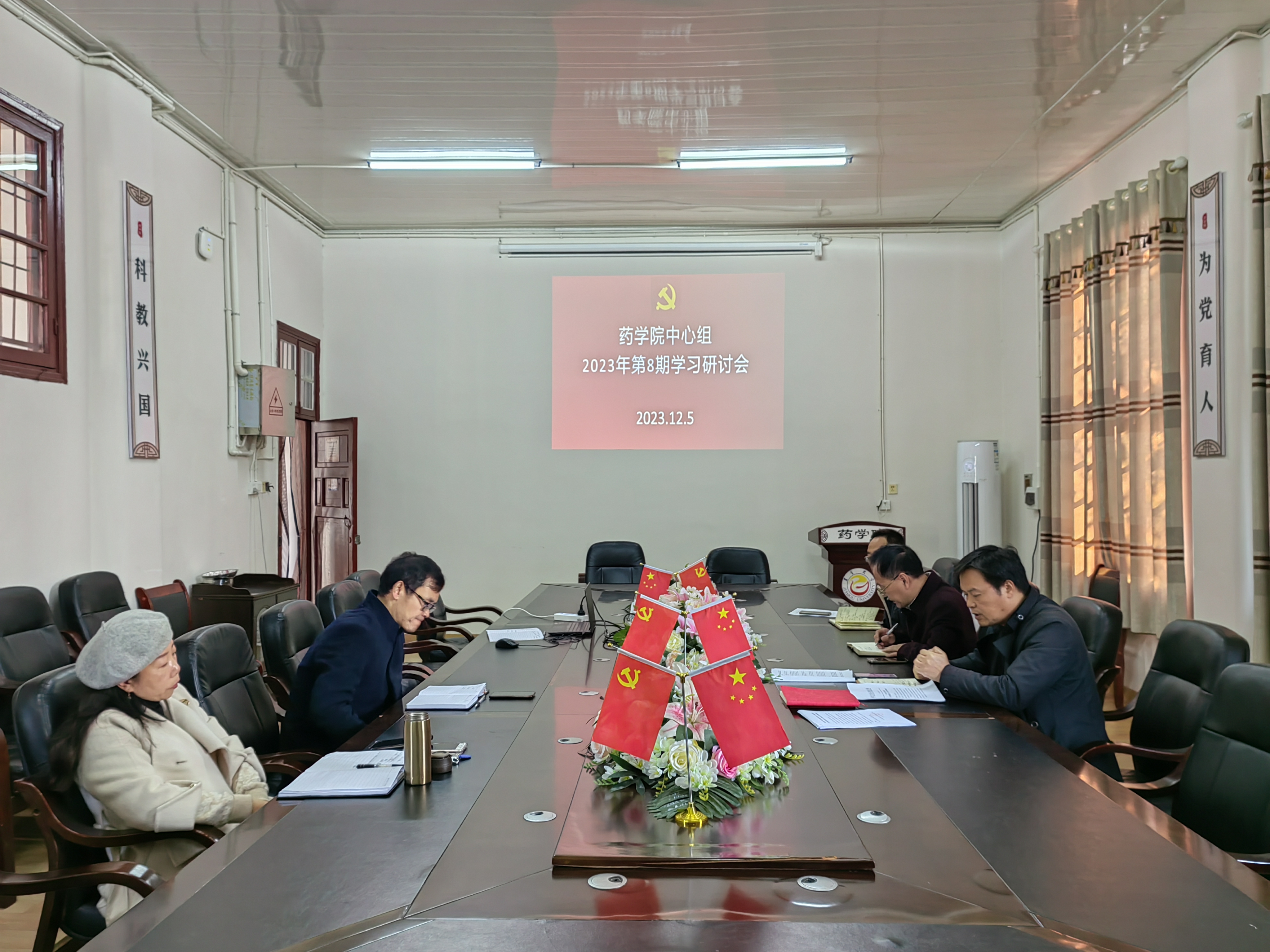 图为 太阳成集团tyc234cc中心组开展教育家精神学习研讨。