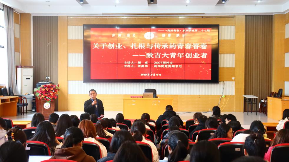 本网讯(通讯员 胡心洁)为激励公司学子创新创业,3月19日上午,太阳成集团tyc234cc在大田湾校区2609学术报告厅开展了药好青春系列讲座第二十七期“关于创业、扎根与传承的青春答卷——致吉大青年创业者”,讲座特邀2007届优秀员工颜亮前来主讲,辅导员向晓媚及部分员工参加讲座,讲座由公司党委副书记张勇华主持。