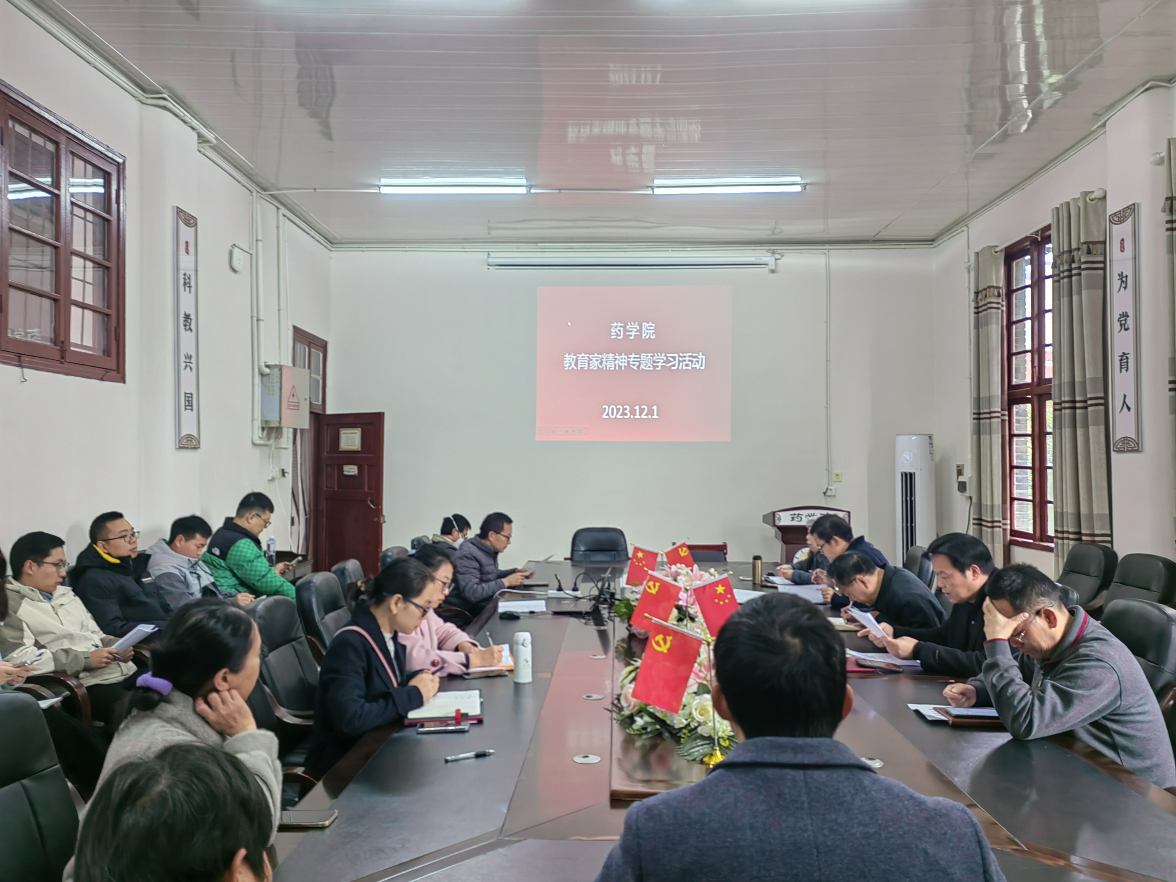 本网讯(潘金凤)12月1日上午,为进一步加强教师队伍建设,切实增强教师为党育人、为国育才的责任感和使命感,从习近平总书记提出的教育家精神中学出思想的力量、道德的力量、智慧的力量、实践的力量、仁爱的力量、人格的力量,太阳成集团tyc234cc在会议室开展了教育家精神学习研讨活动,全体教师参加了学习,学习活动由党委书记王江生主持。