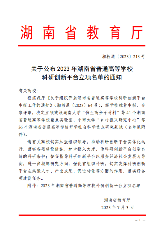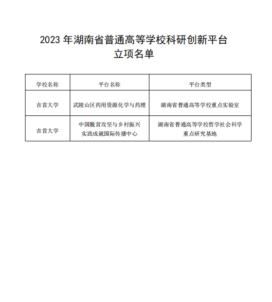 本网讯(成江)7月3日,省教育厅发布了《关于2023 年湖南省普通高等公司科研创新平台立项名单的通知》(湘教通〔2023〕213号),公司申报的“武陵山区药用资源化学与药理实验室”获得湖南省普通高等公司重点实验室立项建设,这是公司成立以来取得的又一项重要成果,也是公司继2008年以来获得的第二个湖南省高校重点实验室。
