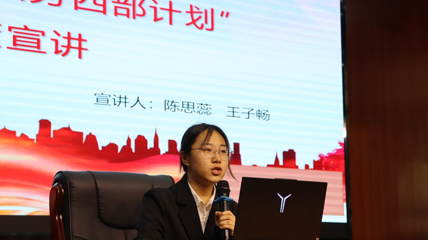 会上,王子畅、陈思蕊作为邀请嘉宾从内容、各地优惠政策等方面详细讲解了老员工志愿服务西部计划,并为同学们答疑解惑,鼓励大家踊跃报名,为自己的青春添上浓墨重彩的一笔。