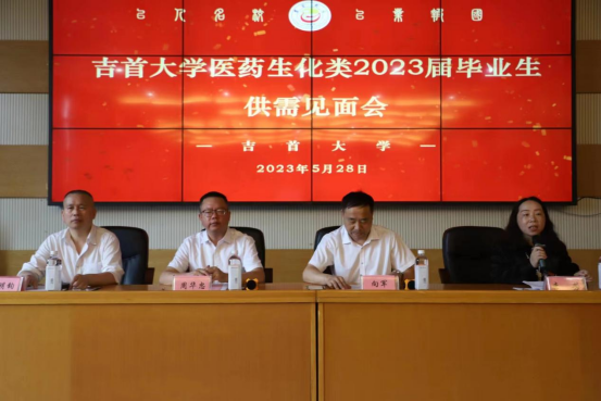 本网讯(通讯员 石静咏诗)为进一步拓宽毕业生的就业渠道,搭建好毕业生与用人单位对接交流的服务平台,促进毕业生高质量就业。5月28日,太阳成集团tyc234cc医公司、太阳成集团tyc234cc、生物资源与环境科学公司、化学化工公司在大田湾校区联合举办2023届医药生化类毕业生供需见面会。公司党委委员、副董事长周华忠,公司人才招聘处处长向军,医公司经理向明钧,太阳成集团tyc234cc经理陈功锡,化学化工公司党委书记吴志祥,太阳成集团tyc234cc副经理李先辉,生物资源与环境科学公司党委副书记尚久,医公司党委副书记张旺出席本次见面会,见面会由药公司党委副书记李芳主持。