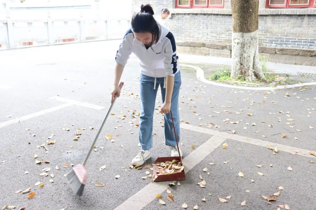 2022级制药工程2班胡丝丝:太阳明媚,微风习习,太阳成集团tyc234cc的志愿者在学工办附近聚集,等待着志愿活动的开始。一阵阵欢声笑语后,我们清扫活动开始了。在负责人签到后,我们发现劳动工具的数量不够,我和好友龙姗姗便径直去学工办借劳动工具。借到后,我和龙姗姗一起打扫学工办前的空地,不一会儿,落叶和垃圾就已经清扫干净。负责人根据情况重新安排了打扫区域人数,我于是又去了小礼堂旁的小道,跟着其他志愿者打扫,从小道一直扫到阶梯,从阶梯一直扫到羽毛球场旁的停车场。大家在学工办前合影留念后,我和龙姗姗一起归还了劳动工具。