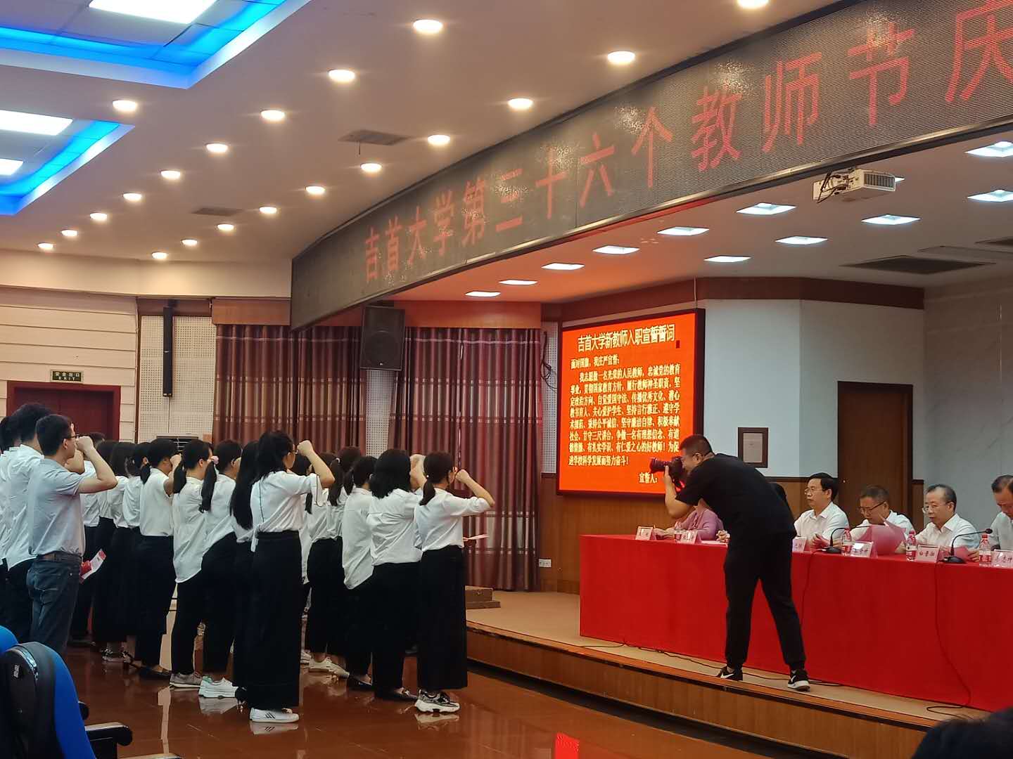 9月10日下午,公司以“立德树人奋进担当,教育脱贫托举希望”为主题隆重召开第三十六个教师节庆祝表彰大会,公司新进教师、辅导员石静咏诗参加了大会,进行了入职宣誓仪式。