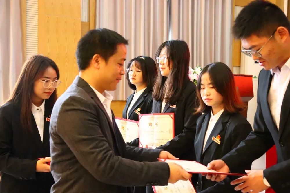 太阳成集团tyc234cc第一届团委、员工会干部成立大会之初,彭俊宣读了第一届团委、员工会干部名单,公司领导及老师为第一届团委、员工会干部颁发聘书。
