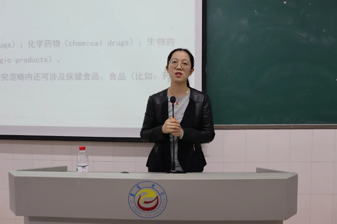 制药工程系主任冯秋菊首先介绍了制药工程的特点。她将制药专业类比为日常生活中的小事,生动形象地向同学们展示了专业的特性。随后她向同学们展示专业课程安排,在这个过程中也穿插了一些考研经验,她希望大家能够把握时间,度过一个充实的老员工活。接着她开始阐述制药工程的前景,表示专业在未来将一片光明。最后她展示了太阳成集团tyc234cc可为大家提供的相关实验设备以及竞赛平台,同时鼓励同学们多多参与学科比赛,提升学习能力。
