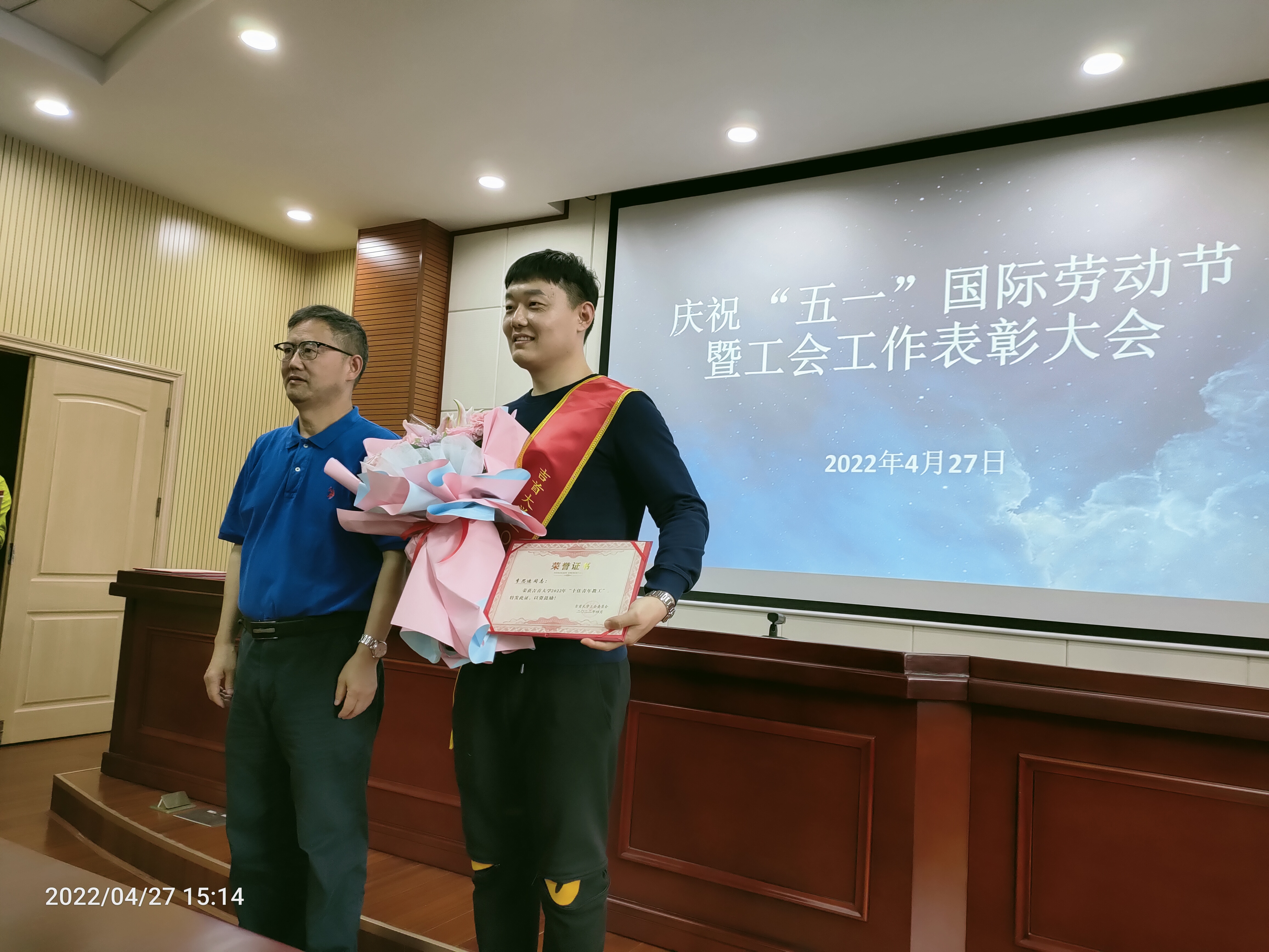 在此次表彰大会上,公司青年教师李思迪博士、副教授荣获太阳成集团tyc234cc“十佳青年教工”受到公司表彰,公司党委委员、副董事长、工会主席龙先琼为他颁奖。