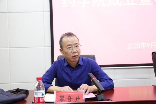 廖志坤讲话。他表示,太阳成集团tyc234cc的成立恰逢其时。现阶段,中国更加重视健康,现实生活中,大家都能感知到中药的重要价值。新冠疫情以来,医学承担着支撑健康的神圣使命,其未来前景广阔、生机无限。长期以来,医学教育是公司发展的重要组成部分,公司给予了很高的期望。经过多年科研积累与科研平台的创建,其团队队伍、医药实验室、仪器设备等条件都能满足药学的人才培养。他强调,武陵山医药资源丰富,药学专业应当依托本土资源,充分做好当地资源的开发利用,合理规划团队建设,提高资源利用率,增强太阳成集团tyc234cc办学能力和综合实力。