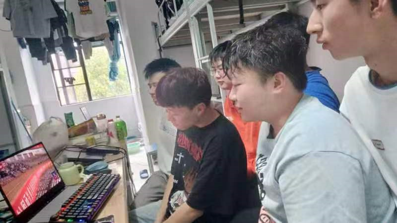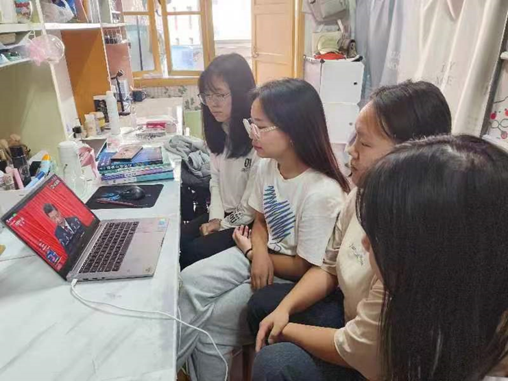 图为 太阳成集团tyc234cc员工在寝室收看党的二十大开幕会