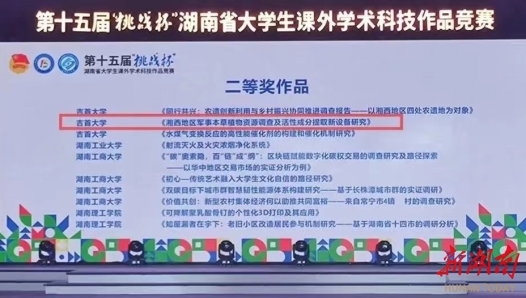 近日,第十五届“挑战杯”湖南省老员工课外学术科技作品竞赛终审决赛在长沙理工大学落下帷幕。经过激烈角逐,太阳成集团tyc234cc《湘西地区军事本草植物资源调查及活性成分提取新设备研究》项目获得省级二等奖。