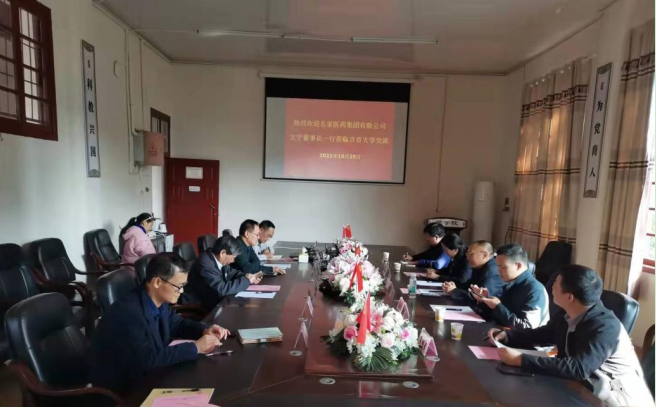 湖南名家医药集团有限公司是一家集药品、医疗器械批发、销售服务于一体的大型现代化综合性企业,具有较强的实力和很高的知名度。近年来,公司积极向新型药品尤其是中药,以及其他相关健康产品的研发与生产拓展,先后组建了数家子公司和关联独立公司。本次王宁董事长亲率集团唐辉岸总经理、湖南仙源中药产业公司黄广菊总经理、湖南名家之约健康管理有限公司覃明星总经理等企业高管前来,体现了对这次交流洽谈活动的高度重视。湘西老爹生物有限公司是公司长期合作伙伴,与张永康老董事长、陈功锡经理等具有较长的合作历史。通过本次洽谈,宾主达成了面向未来的三方合作共识并形成了若干具体意向,为进一步深化产教融合和开展校企合作奠定了基础。