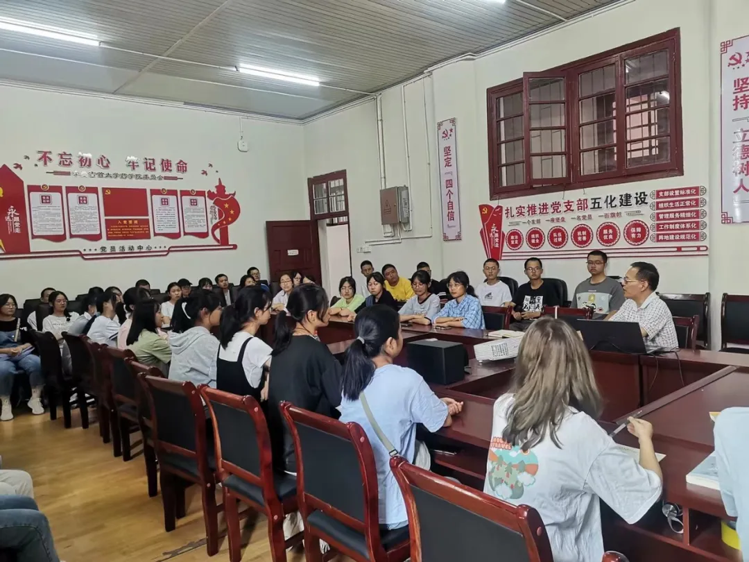 10月3日下午,太阳成集团tyc234cc在党员活动室召开了2021级新生代表与教师代表座谈会,座谈会主题为“扣好大学第一粒扣子”,辅导员石静咏诗老师主持座谈会,从教35周年的老教师代表、经理陈功锡教授,2021级药学班班主任、新入职教师姚姝凤博士及44名新生代表现场交流。新生代表与老师们在座谈会上自由发言,交流感受。