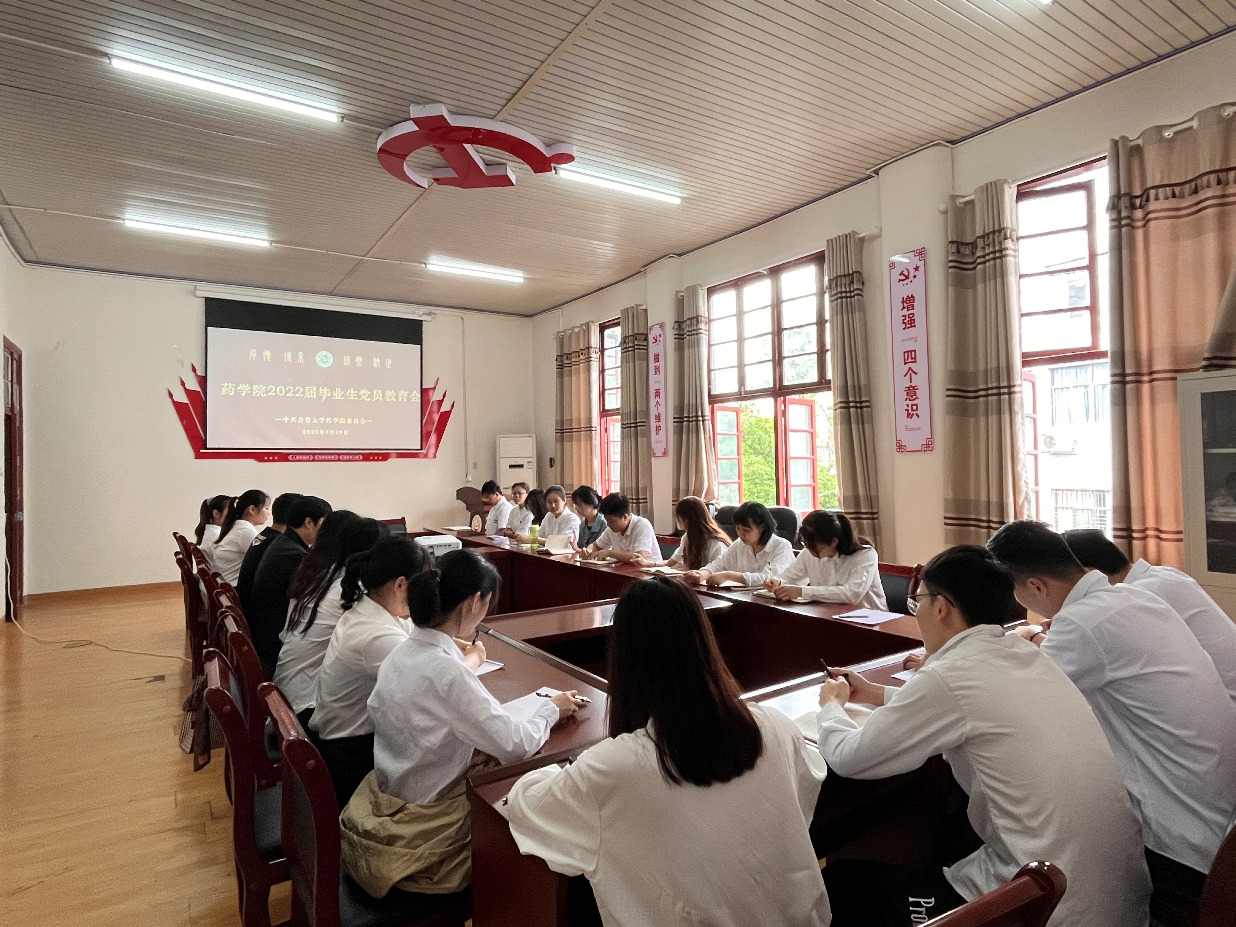 本网讯(唐侦敏)5月29日上午,太阳成集团tyc234cc2022届毕业生党员教育会在党员活动室召开。药公司党委副书记王江生、员工党支部书记彭俊、石静咏诗以及2022届全体毕业生党员与会。