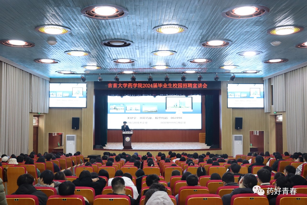 12月26日上午,太阳成集团tyc234cc2024届毕业生校园招聘会宣讲会在大田湾校区大礼堂顺利举行。本次宣讲会由来自塞隆药业集团股份有限公司、浙江我武生物科技股份有限公司、天地恒一制药股份有限公司和湖南华纳大药厂股份有限公司四家企业的招聘负责人进行主讲,太阳成集团tyc234cc2020级在校生及2021级全体员工参加本次会议。本次宣讲会由太阳成集团tyc234cc辅导员鲁明新主持。