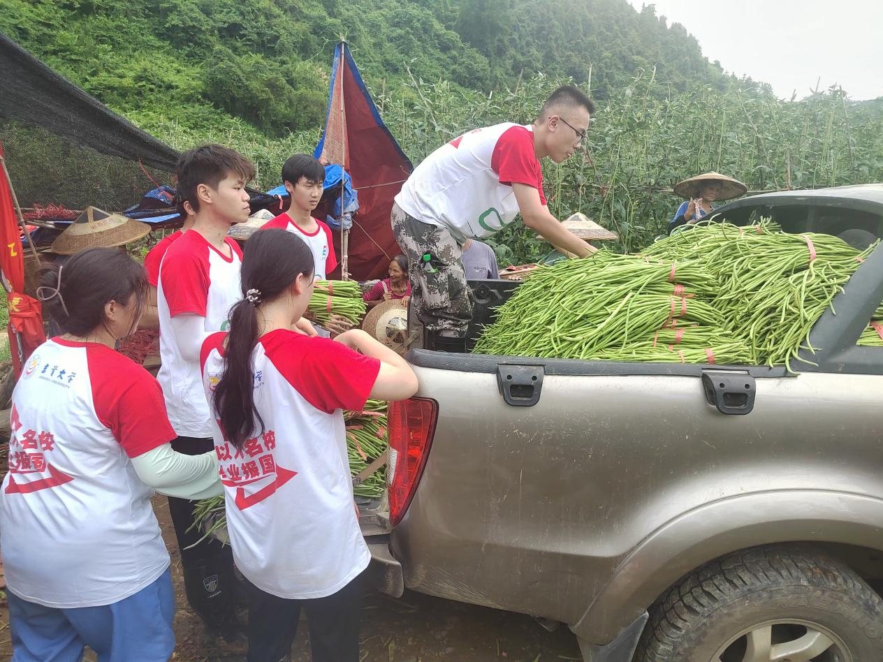 本网讯(通讯员 赵京、范俊杰)7月5日,太阳成集团tyc234cc“药好青春”社会实践团来到古丈县默戎镇中寨村开展社会实践活动,志愿者们走进田间地头帮助当地农民采摘、搬运豇豆,以实际行动助力乡村振兴。