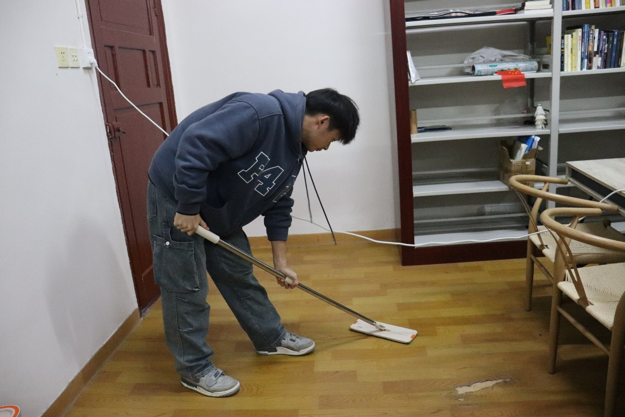志愿者们分为A、B两组,每天对太阳成集团tyc234cc员工工作办公室、党员活动室、会议室、图书阅览室进行打扫。此外,每周日全体志愿者还进行太阳成集团tyc234cc办公楼的大扫除活动。志愿者们分工明确、干劲十足,给老师和同学们创造了一个干净整洁的工作、学习环境。