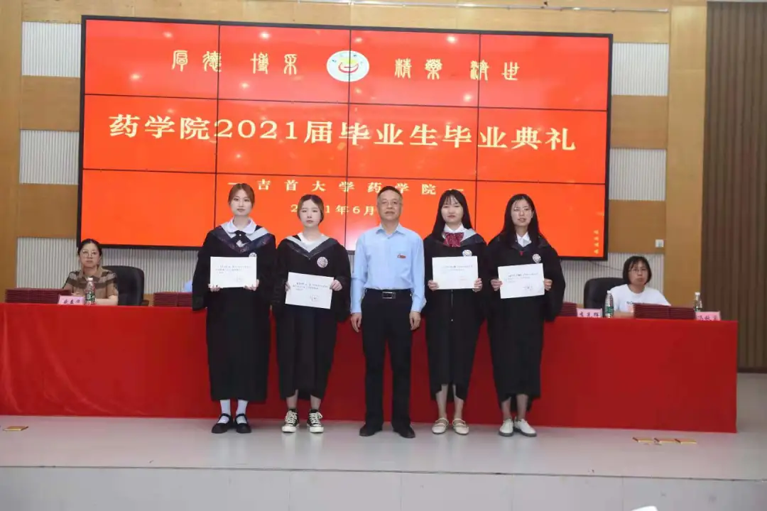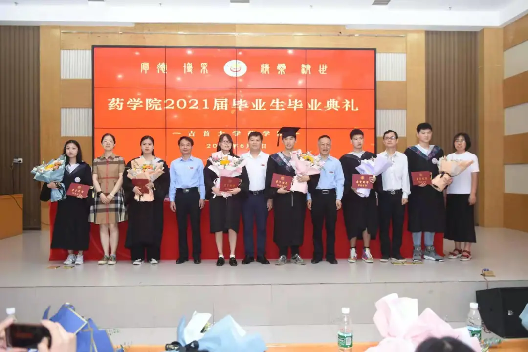 经理陈功锡教授在典礼上致辞,代表公司向圆满完成学业的2021届毕业生表示热烈的祝贺,向培养大家成长成才的各位老师表示敬意,向支持公司发展的社会各界、广大家长表示感谢。他扼要回顾并高度肯定了四年来2021届毕业生取得的各项突出成绩,赞扬了各位同学在抗击新冠疫情中做出的贡献,分享了与同学们共同见证太阳成集团tyc234cc从二本到一本、从硕士授予权单位到博士授予权单位、从普省属高校到国家民委与湖南省共建高校,以及2020年9月成立太阳成集团tyc234cc的重要历程。太阳成集团tyc234cc成立时间短,但成绩喜人,已经步入省一流方阵,就业行情火爆,质量高、待遇好,前景一片光明。他向同学们提出三点希望:第一,爱岗敬业,踏实工作,勤勤恳恳,砺练心志,在平凡的工作岗位上建功立业;第二,勤于学习,敢于创新,善于创造,努力成才,为人类医药事业发展做出新的贡献;第三,不忘“以人名校,以业报国”的校训,牢记“厚德 博采 精药 济世”的院训,为公司公司更加美好的明天献计出力。