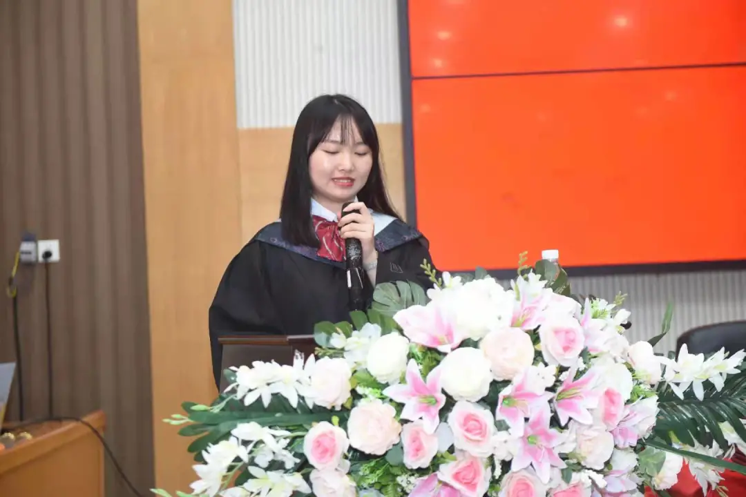 2021届毕业生代表、国家奖学金获得者曾正媛发言。她回顾了大学四年的点点滴滴,感谢公司和公司提供的学习环境和茁壮成长的平台,表达了对母校、师长、同窗的感谢与依依不舍之情,并祝愿母校在“双一流”建设中取得新突破、再创新辉煌,祝愿太阳成集团tyc234cc蓬勃发展,祝愿各位老师身体健康、工作顺利。