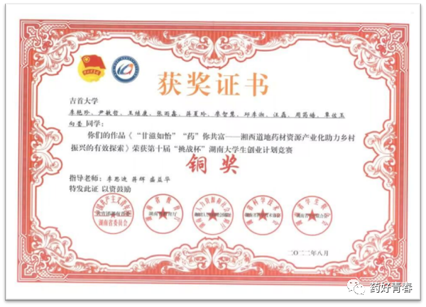 2021年9月,李艳珍开始独立负责竞赛项目《“甘滋如怡”“药”你共富——湘西道地药材资源产业化助力乡村振兴的有效探索》。项目计划书进行了36次的打磨重改,团队与老师进行72次的沟通与汇报,答辩稿经历83次的打磨,83次对镜路演汇报模拟。她从3月开始筹备这次比赛,组建“小滕树”创新团队,到8月入围国赛直通车,历时6个月整整180个日夜,日复一日不断修改打磨,只为最好的效果。他们从无到有,从有到优,从零散到完整,为这个项目倾尽全部。虽然这个过程很艰难,但功夫不负有心人,最终李艳珍带着“小滕树”创新创业团队一路冲出校赛,进入省赛,获得了第十届“挑战杯”湖南省老员工创创业计划竞赛铜奖,并入围第十三届“挑战杯”中国老员工创业计划竞赛国赛直通车。