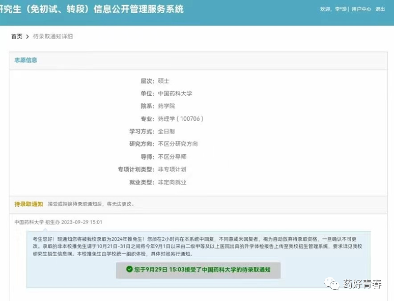 2022年6月,李艳珍跟随公司优秀学子共同前往中南大学与中国科协主席万钢进行面对面的交流与学习,见面会后,她更加坚定了理想信念,始终坚信自己作为药学专业的一名员工,应该脚踏实地学好专业知识,踏踏实实做科研,为医药事业作出贡献,不辜负期望。“我知道,我离我的梦想更进一步了!”2023年9月,李艳珍成功推免至中国药科大学,继续攻读硕士研究生。