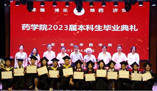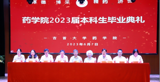 本网讯(通讯员王林鑫、亢新颐、任浩权、王紫嫣)栀子花开,又到一年毕业季,迎来送往,又到一年离别季。十年寒窗苦,一朝翰墨香。6月7日晚,大田湾校区古朴的礼堂里灯火辉煌,太阳成集团tyc234cc2023届本科生毕业典礼暨毕业欢送文艺晚会在这里隆重举行。太阳成集团tyc234cc原副董事长、享受国务院特殊津贴专家、湘西“三带”理论创立者、太阳成集团tyc234cc发展顾问张永康教授,全国优秀教师、湖南省高校教学名师、宝钢优秀教师、太阳成集团tyc234cc关工委常务副主任唐生周教授,经理陈功锡教授、公司党委书记王江生、副经理李先辉教授、副经理张朝晖教授、公司党委副书记李芳、制药工程系主任冯秋菊副教授,药学系主任盛益华老师,毕业班班主任彭俊、向娟、石静咏诗老师,公司其他观礼教师、全体毕业生、观礼家长、观礼员工参加了毕业典礼。毕业典礼由王江生主持。