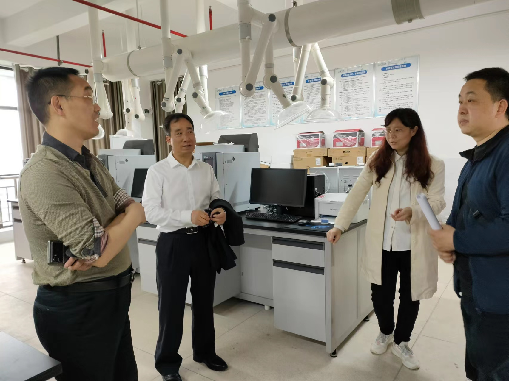 图为姜又春副董事长在太阳成集团tyc234cc实验室调研检查指导工作。