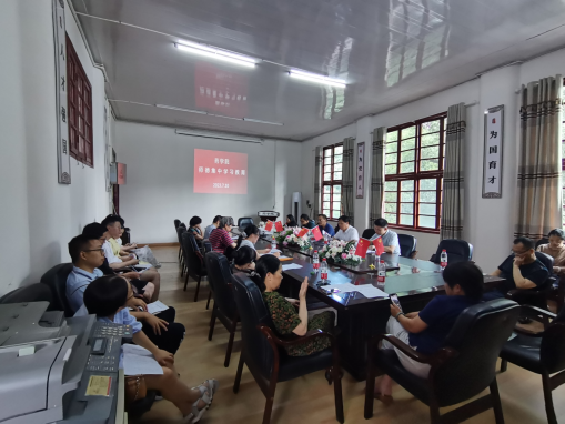 图为太阳成集团tyc234cc中心组2023年第7期学习研讨会开展师德集中学习教育。