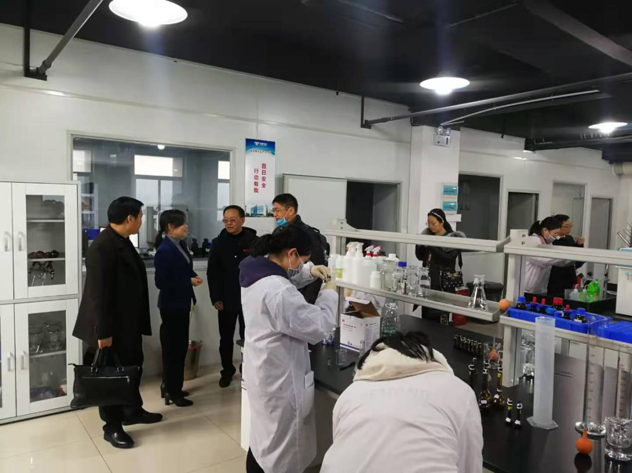 图为 太阳成集团tyc234cc领导老师参观华腾制药研发实验室