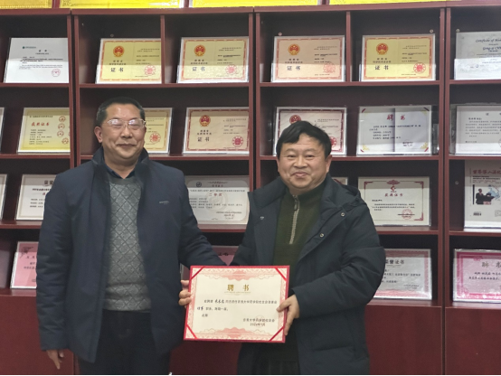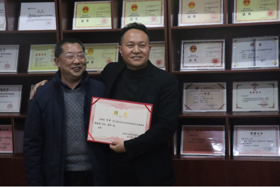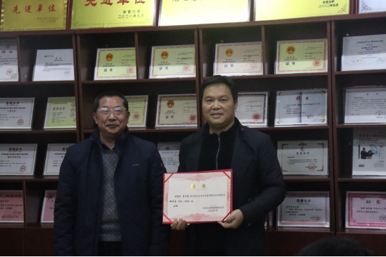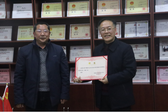 图为周华忠副董事长颁授“太阳成集团tyc234cc员工分会”会牌