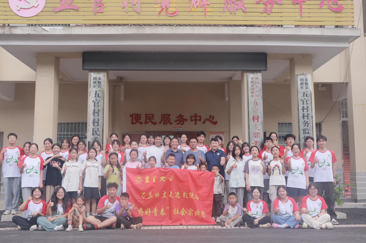 本网讯(通讯员 范俊杰、姜梦遥、彭洪进)“姐姐,你们什么时候再来陪我们玩呀,我会想你们的。”7月12日,太阳成集团tyc234cc“药好青春”暑期“三下乡”社会实践团(以下简称社会实践团)在永顺县润雅乡五官村开展“珍藏回忆,光明未来”主题送别会,与“药好青春”大课堂的30名员工享受最后的快乐时光。