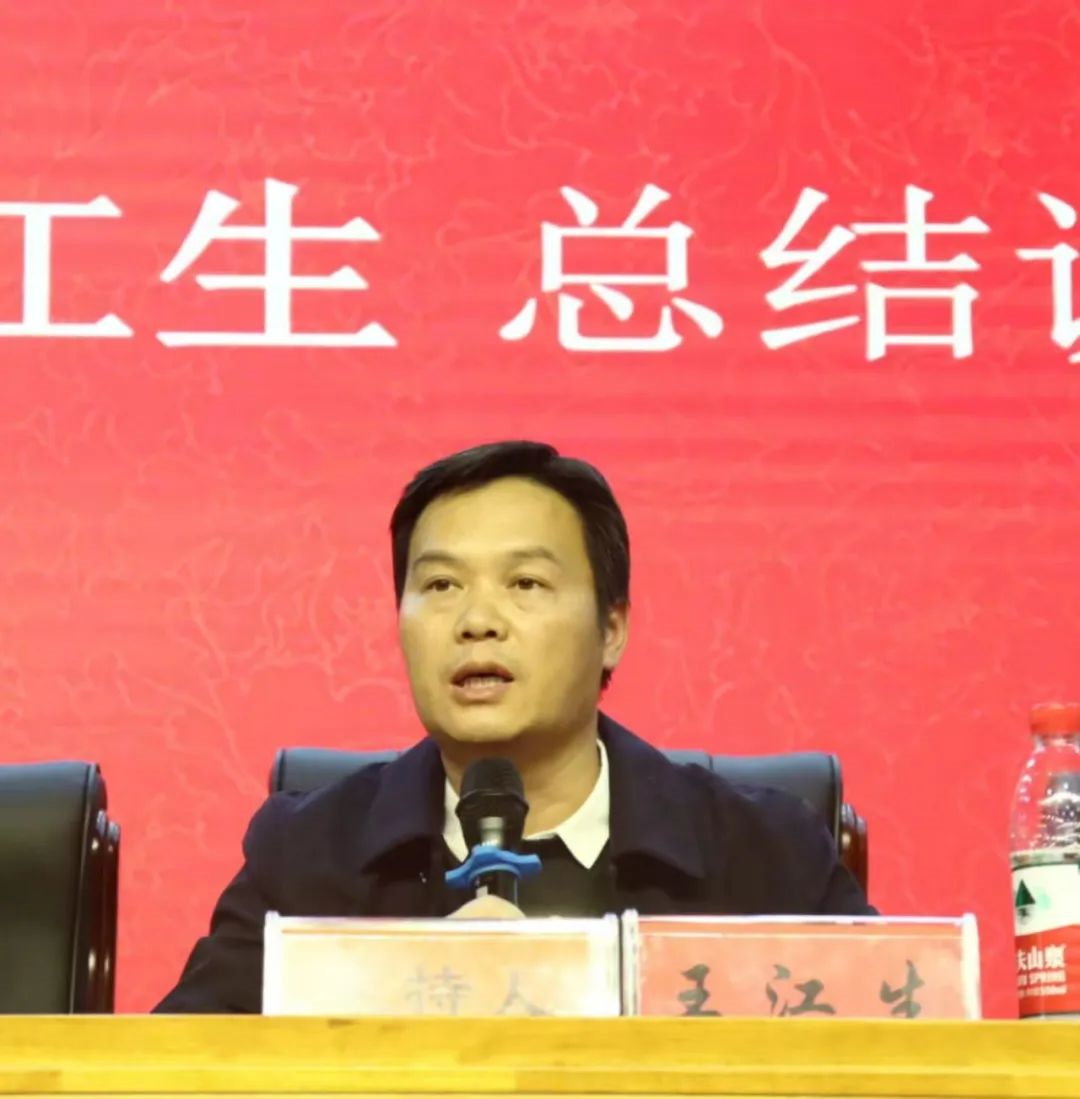 王江生作总结讲话,他首先对公司军训工作取得的成绩表示肯定,对获奖的个人表示祝贺,对全体教练员表示感谢。他向全体新生提出三点要求:一是希望全体新生认真领会经理的讲话精神。坚守诚信,树立自信,自信自强、严于律己,追逐梦想、努力奋斗。二是希望大家牢记教师代表成江老师提出的忠告,不要游戏人生,同时要向李艳珍等优秀学长学姐们学习,求真务实,勇攀高峰,践行校训“以人名校,以业报国”和院训“厚德 博采 精药 济世”。三是希望同学们认真领会全国优秀教师唐生周老师带领我们诵读的院训及释义,并勉励同学们要做“三勤员工”——勤学习、勤研究、勤实践,在医药赛道上求真务实,勇攀高峰,为祖国医药事业做出自己的贡献。