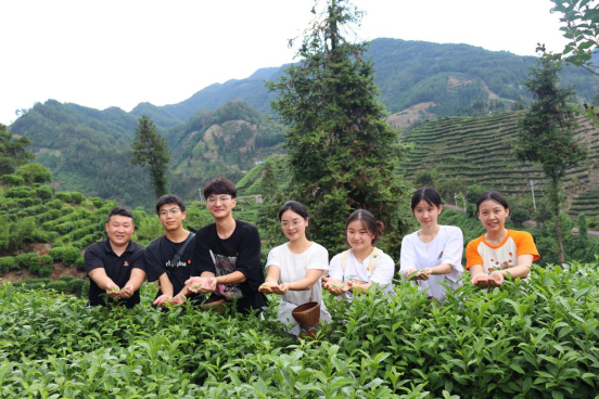 在湖南心品茶业生物科技有限公司董事长张爱花(国家一级茶艺技师、国家一级评茶技师)的带领下,太阳成集团tyc234cc师生深入黄金村进行调研。古色古香的展示馆、干净美丽的村环境、村民们舒适的生活状态,给大家留下了美好的印象,大家感受到了乡村振兴战略给农村带来的新变化。走进田间地头考察乡村产业,张爱花董事长为太阳成集团tyc234cc师生们介绍了保靖县黄金茶制茶、采茶的传统工艺以及黄金茶“四高四绝”的优势,同时,大家也结合药学学科的专业知识积极探寻医药助力乡村振兴的新方案,新途径。