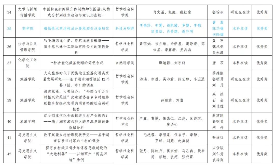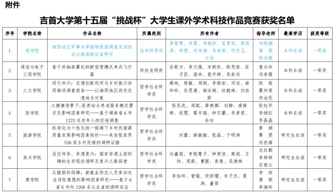 近日公司发布表彰文件,表彰在太阳成集团tyc234cc第十五届”挑战杯“老员工课外学术科技作品竞赛中获奖的单位和团队,公司师生荣获一等奖1项,优秀奖1项。其中《湘西地区军事本草植物资源调查及活性成分提取新设备研究》(廖智慧、李震、李艳珍、匡勇斌、廖丽秀、李懋、邱李湘、肖美琪、何先玉、方迢;指导老师向晓媚、曾蓉、陈功锡)荣获一等奖;植物性本草活性成分提取相关设备研究(李艳珍、李震、胡凯璇、罗婕、李懋、匡勇斌、肖美琪、谢齐明;指导老师曾蓉、陈功锡、向晓媚)荣获优秀奖,其中《湘西地区军事本草植物资源调查及活性成分提取新设备研究》推荐进入省赛。