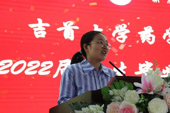 向娟老师作为教师代表向2022届毕业生献上最诚挚的祝福,勉励大家要自信乐观,要坚持学习,要学会包容,要善于交流和注重团队精神。