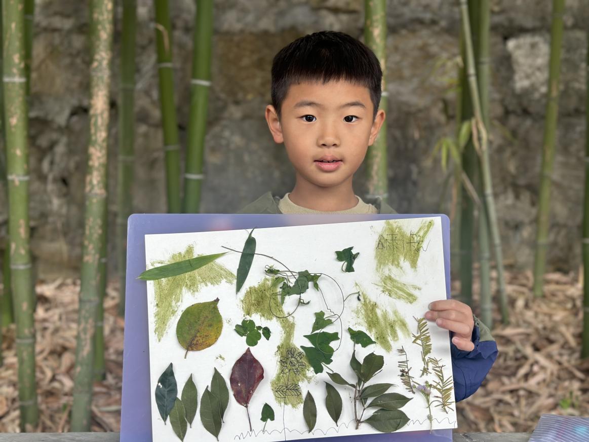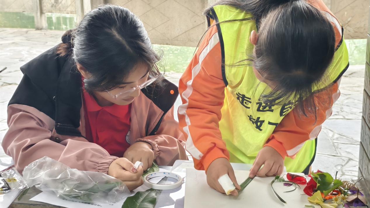 在研学期间,志愿者和员工们一同收集落叶,制作树叶画。在手工创作过程中,志愿者引导员工们养成关注自然、热爱生命的理念,培养他们勤于观察、乐于动手的习惯。