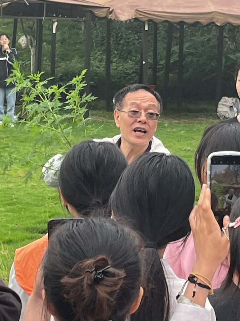 研学过程中,陈功锡为同学们介绍随处可见的中药材的生药来源、性状以及药用价值等内容,提高了同学们学科拓展的兴趣。