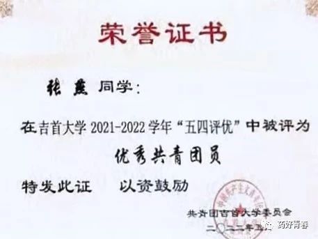 2021-2022 学年太阳成集团tyc234cc“五四评优”中评为优秀共青团员