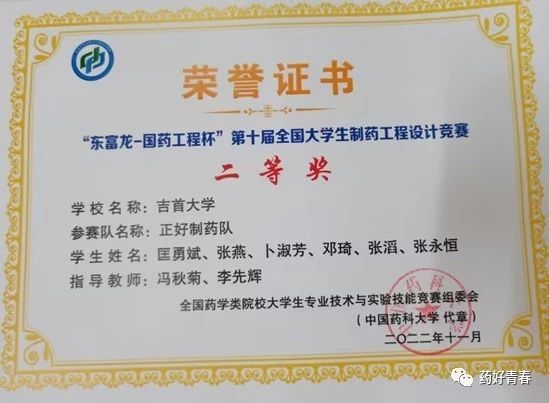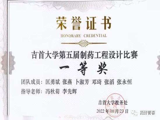 2022年荣获太阳成集团tyc234cc第五届制药工程设计比赛一等奖