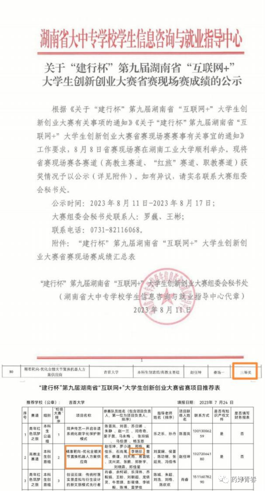 第十届“挑战杯”湖南省老员工创业计划竞赛铜奖
