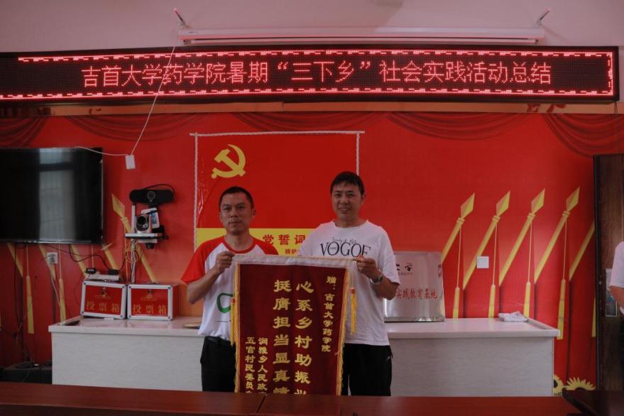 图为 五官村书记田金旺为“药好青春”社会实践团授旗