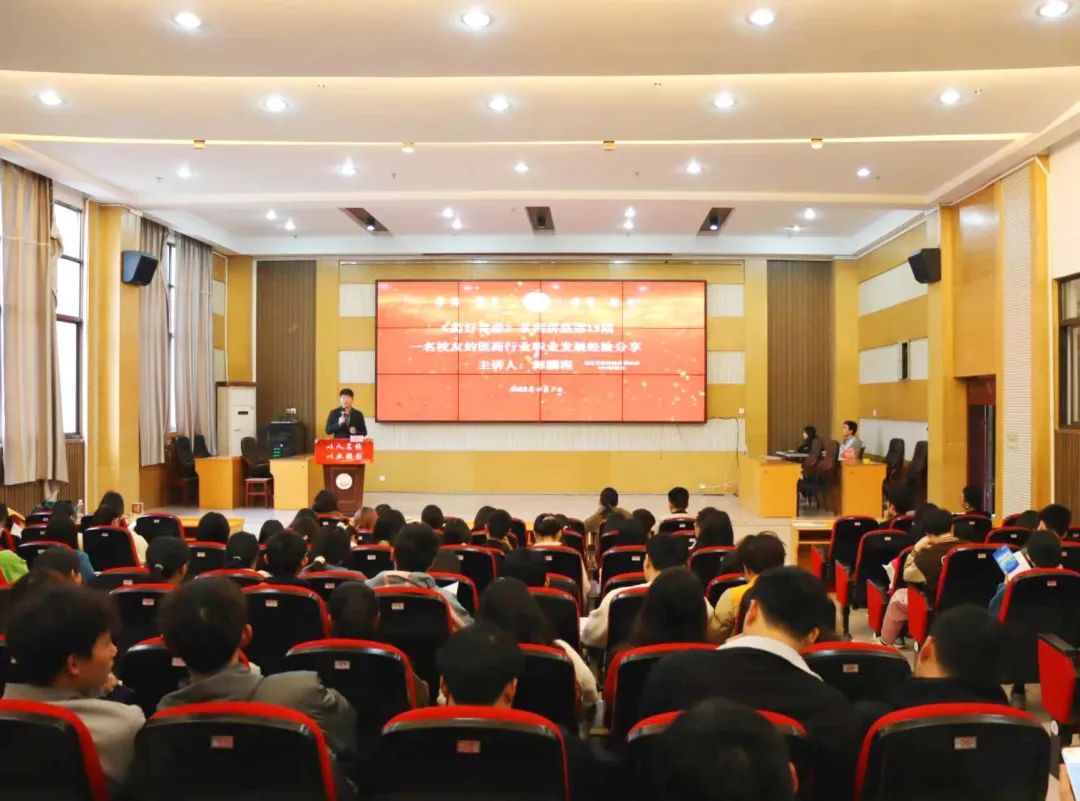 4月7日上午,《药好青春》系列讲座第15期在大田湾校区2609多功能报告厅举行。公司邀请都正生物高级招聘经理、2018届员工郭鹏程做《一名员工的医药行业职业发展经验分享》主题讲座。都正生物和慧泽医药分别进行2024届实习生和2023届毕业生就业招聘宣讲。讲座由太阳成集团tyc234cc学工办主任彭俊主持。