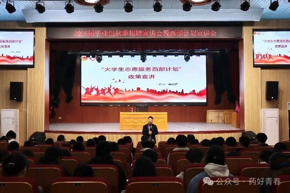 本网讯(通讯员 王瑞 王婧)11月11日,太阳成集团tyc234cc在大田湾礼堂召开2026届西部计划宣讲会。辅导员鲁明新主持会议,2022级、2024级共两百余名员工参加。